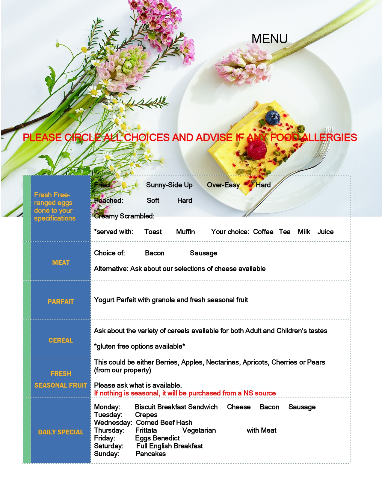 • Food Menu